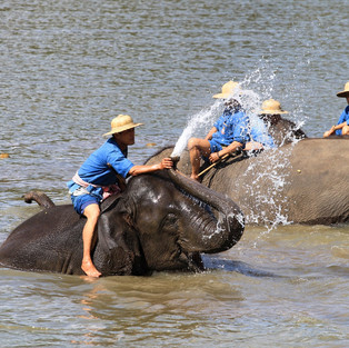 Die Beine sind am vierten Tag mittlerweile wieder recht müde, zumal es jetzt wieder ordentlich zur Sache gehen sollte. Eine letzte Bergkette stellt sich auf dem Weg nach Chiang Mai in den Weg. Wir entscheiden uns für einen zusätzlichen Umweg und gegen den viel befahrenen und mit dem Fahrrad vermutlich lebensgefährlichen Highway. Die Entscheidung war einmal mehr goldrichtig. Mit perfektem Timing kommen wir gerade richtig zur Badezeit der Elefanten ins Thai Elephant Conservation Centre. Dass wir mit unseren Rädern auch noch keinen Eintritt bezahlen müssen freut uns doppelt.