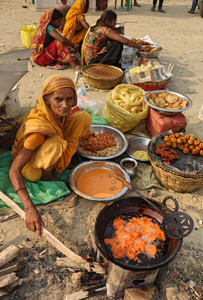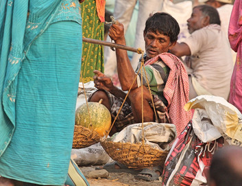 Einen entscheidenden Unterschied für Radfahrer stellen wir aber sofort fest: An den Tankstellen gibt es kein Trinkwasser mehr. Und so wird die tägliche Suche nach Wasser wieder etwas erschwert. Zum Glück gibt es häufig Brunnen aus denen wir unsere Flaschen auffüllen können. Allerdings dauert das Filtern pro Flasche ca. 5min. Bei 35° jeden Tag kommen wir mit dem Filtern kaum nach. Mir setzt die Hitze so sehr zu, dass ich mich mehrmals am Tag übergeben muss. Um der Hitze zu entgehen starten wir zum Teil schon um 5 Uhr morgens, nur um von 10 bis ca. 15 Uhr irgendwo unter einem Mangobaum vor uns hin zu schwitzen. Dazu bewegen wir uns die ganze Zeit auf der einzigen Straße die Richtung Westen führt, einem großen Highway mit viel Verkehr. Wir können es kaum erwarten in die Berge zu kommen. Ein Highlight erleben wir trotzdem auf diesem Abschnitt. In der späten Nachmittagssonne geraten wir durch Zufall auf einen Markt in einer der Kleinstädte am Wegrand. Die vielen bunten Gewänder, blühende Bäume und die untergehende Sonne die die ganze Szenerie in ein warmes Licht taucht ergeben die perfekte Kombination für einige tolle Fotos. Überall wird verhandelt, verkauft und diskutiert. Trotz der Hitze ein sehr interessanter und spannender Abend. Um nicht in die Nacht zu fahren, brechen wir kurz vor Sonnenuntergang auf und suchen uns den nächstbesten Platz außerhalb der Stadt zum Übernachten. Obwohl überall viele Menschen wohnen, ist es doch ein wenig leichter als in Indien einen Platz fürs Zelt zu finden.